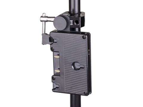 V字型电池扣板自带灯杆夹具,支持25-45mm各种直径的灯杆安装,配B型口电池电压的DC输出。 -
