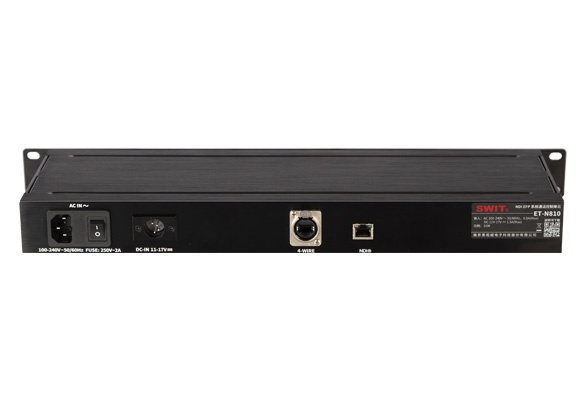 ET-N810为SWIT NDI® EFP讯道制作系统中的导播通话控制单元,可绑定8个ES-N120/140摄像机适配器,支持更多讯道级联,仅1根RJ45网线接入NDI网络,支持19英寸标准机柜安装,灵活部署。