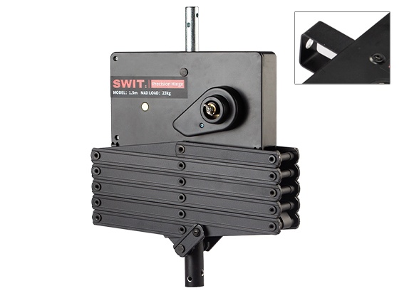 在精准铰链的底端有和灯具连接口,根据灯具的不同可分为管状和U型装两种连接方式,全面满足各种影视灯具的吊挂,被广泛应用与中小型演播室,虚拟直播间,小型舞台直播等。