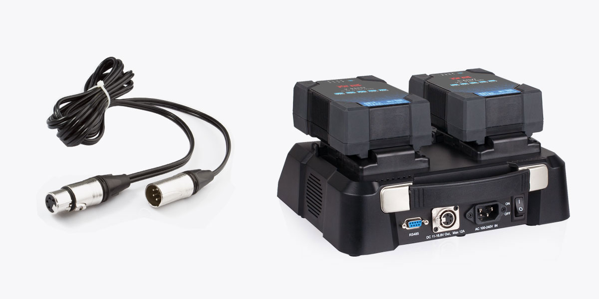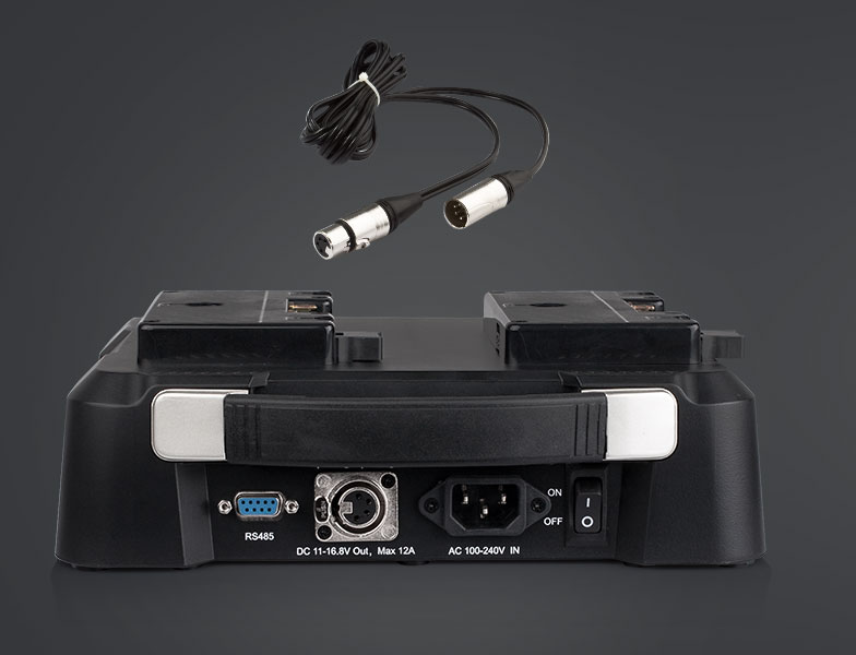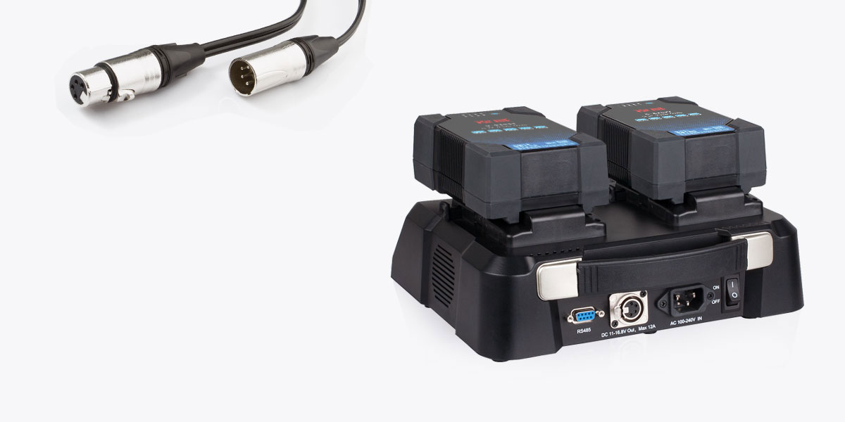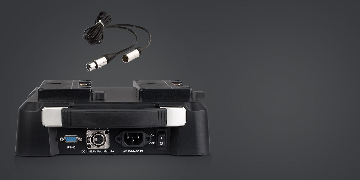 SC-3260G 支持1路AC-DC四芯卡侬适配输出功能,使用视威S-7102四芯卡侬母对公转接线,可为其他设备提供DC16.8V直流电源,最高200W/12A负载。当适配输出负载小于100W的状态下,SC-3260G剩余功率可同时为电池充电,此时充电方式为顺序充电。(S-7102四芯卡侬适配线需另行购买)