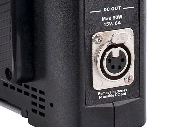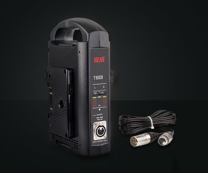SC-3230G支持一路四芯卡侬适配输出,可用作AC-DC适配器,输出为DC15V,6A,90W。当充电通道有电池正在充电,适配无输出。SWIT提供S-7102四芯卡侬母头转公头(选购),用于SC-3230G适配输出。