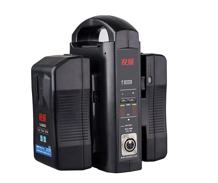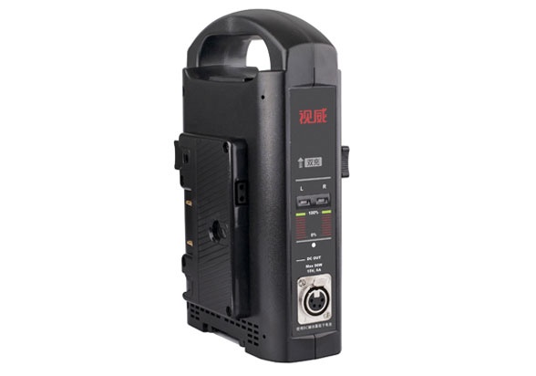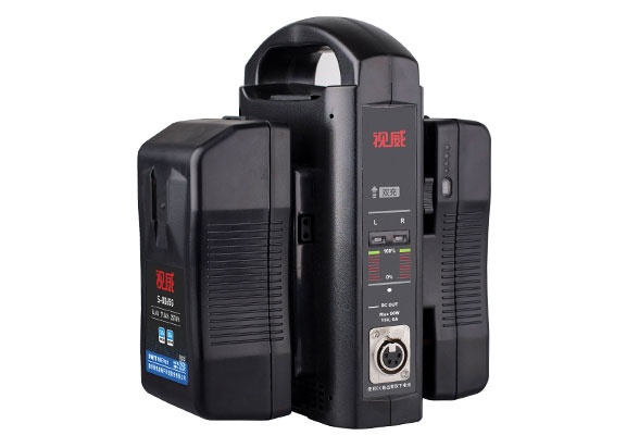 便携式充电器SC-3230G具有2个安顿型扣板,可供2个V字型电池同时充电,充电输出为DC 16.8V,3A×2。