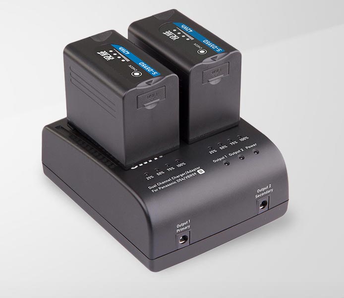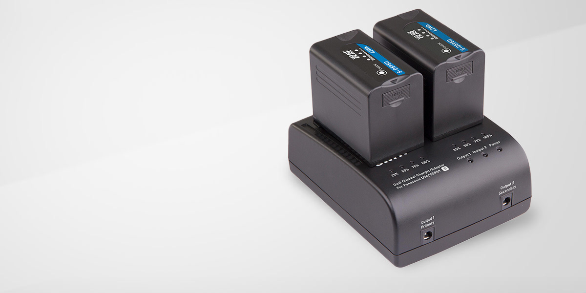 DC-3220D支持2路5.5/2.1mm圆型DC孔同时适配输出,总输出为DC 8.4V,3.5A。选配S-7500P虚拟电池适配器,适用于松下使用CGA-D54/D28及VW-VBD58 / AG-VBR59系列电池的摄像机,或者配有相应扣板的设备。