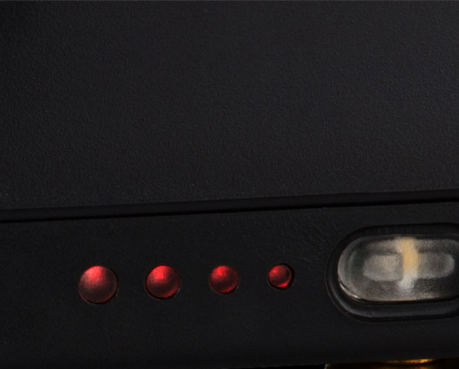 电池侧边配备4段LED电量指示灯,您可在使用前快速查看电池的剩余电量信息,精确到25%。