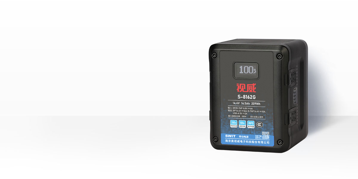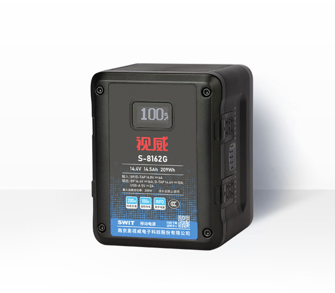 S-8162G由24节进口A级大容量高负载电芯组成,标称电压14.4V,容量达209Wh/14.5Ah,普通ENG摄像机可使用约7小时,ALEXA电影机可使用约2.5小时。