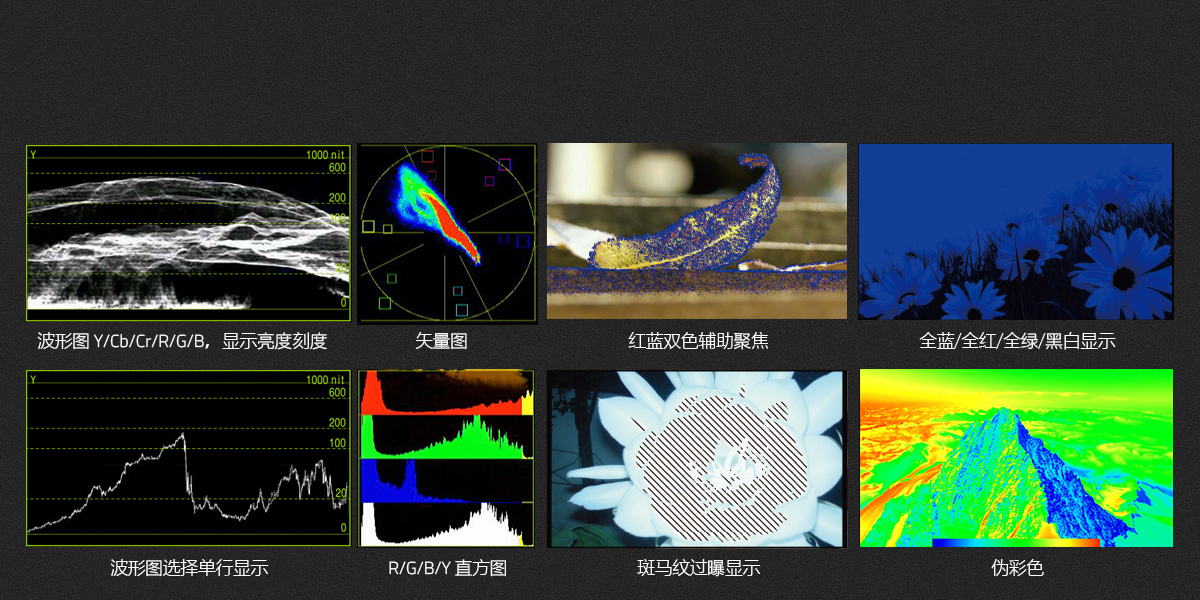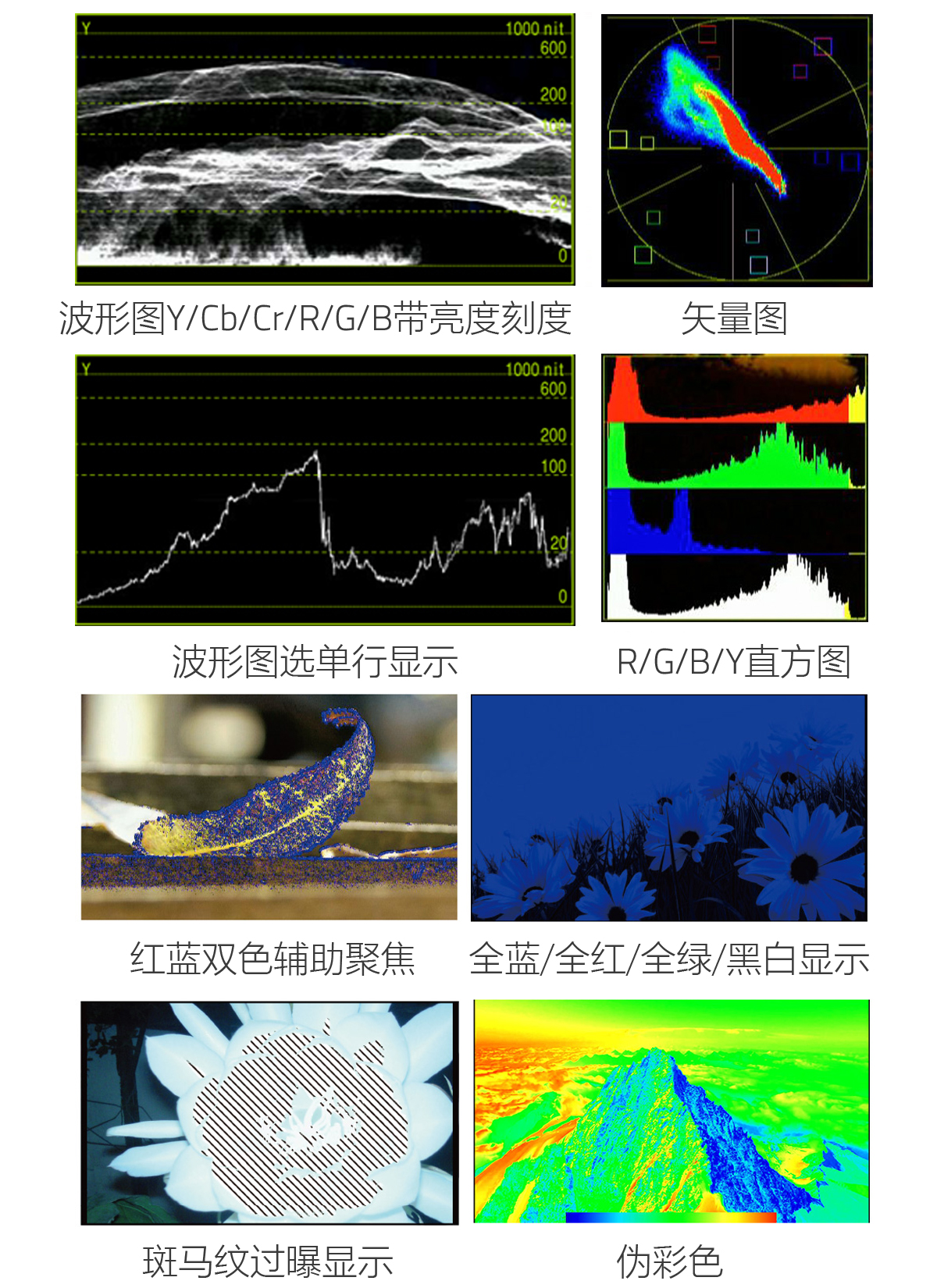 › 波形图/ 辅助聚焦/ 伪彩色/ 斑马纹