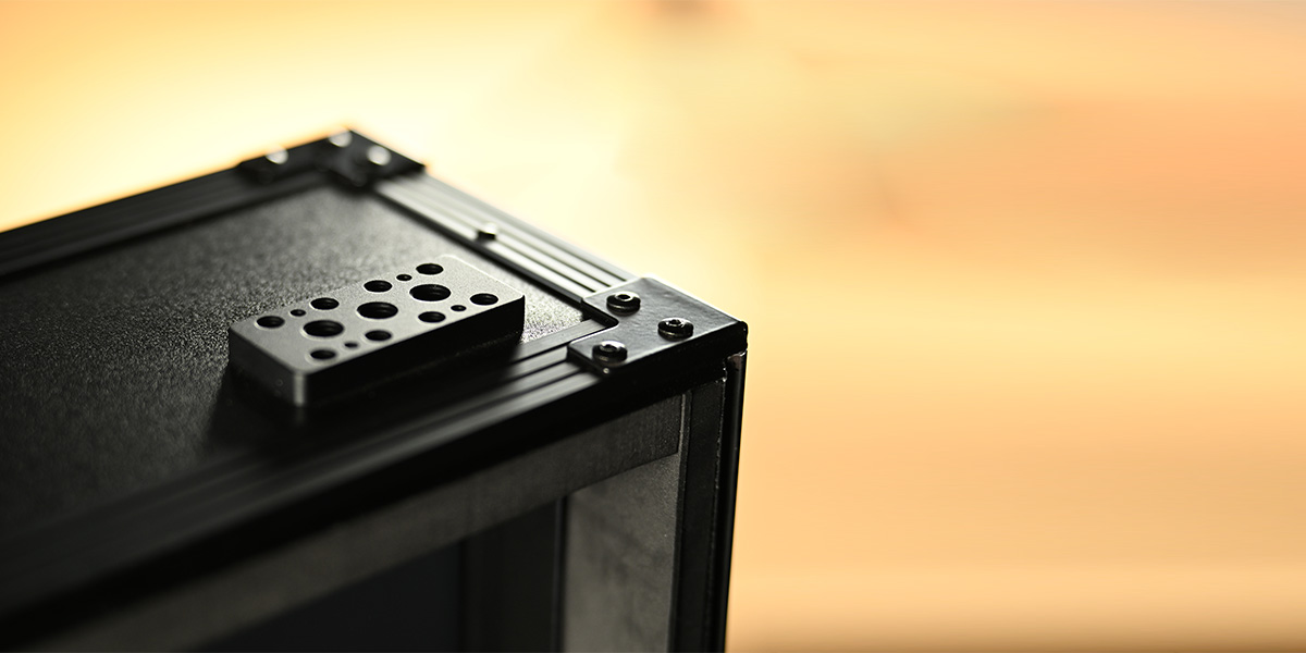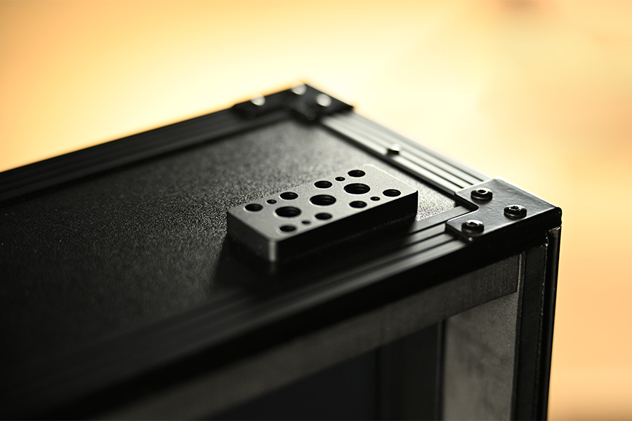 航空箱顶部配有2个芝士板,提供1/4”及 3/8”螺牙,用于安装无线图传接收器等各种配件。