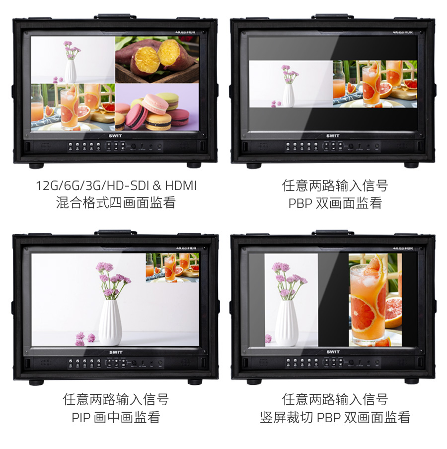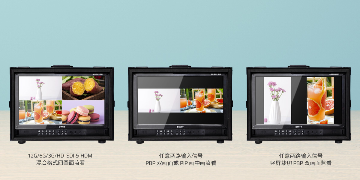 › 12GSDI / HDMI®双画面PBP及PIP监看