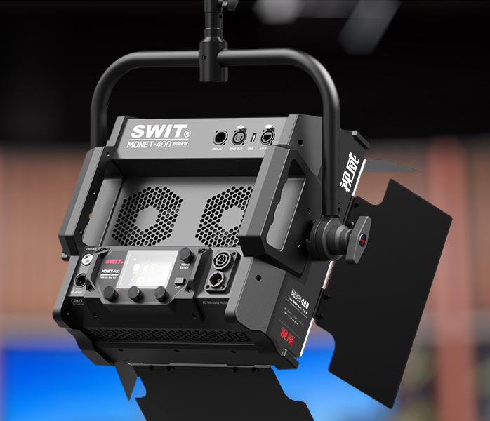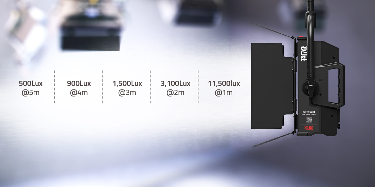 莫奈400标准1米照度高达11500Lux,在大型演播室、影棚制作环境中提供高亮且均匀铺光的专业照明。
