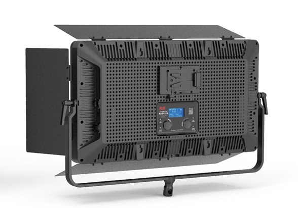 背面的LCD显示屏可显示当前调光值、色温值、DMX地址,以及电池电量或外接电源信息。