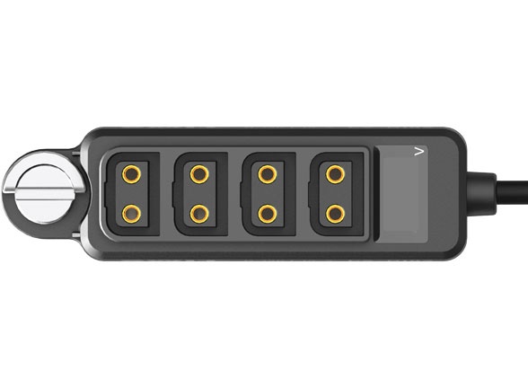 PA-D104用于扩展电池D-tap接口数量的分配器,1个D-tap插头输入,4个D-tap插座输出,可同时为多个视频设备供电。线缆长度50cm。